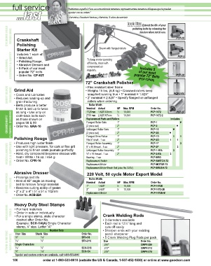 CRANKSHAFT/ FLYWHEEL GRINDING • Order No. GRA-10 Replacement Parts and Rollers Includes