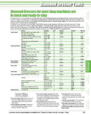 3. Turn coolant on before dressing. Wheels used 5. Use steady travel. Uneven travel causes